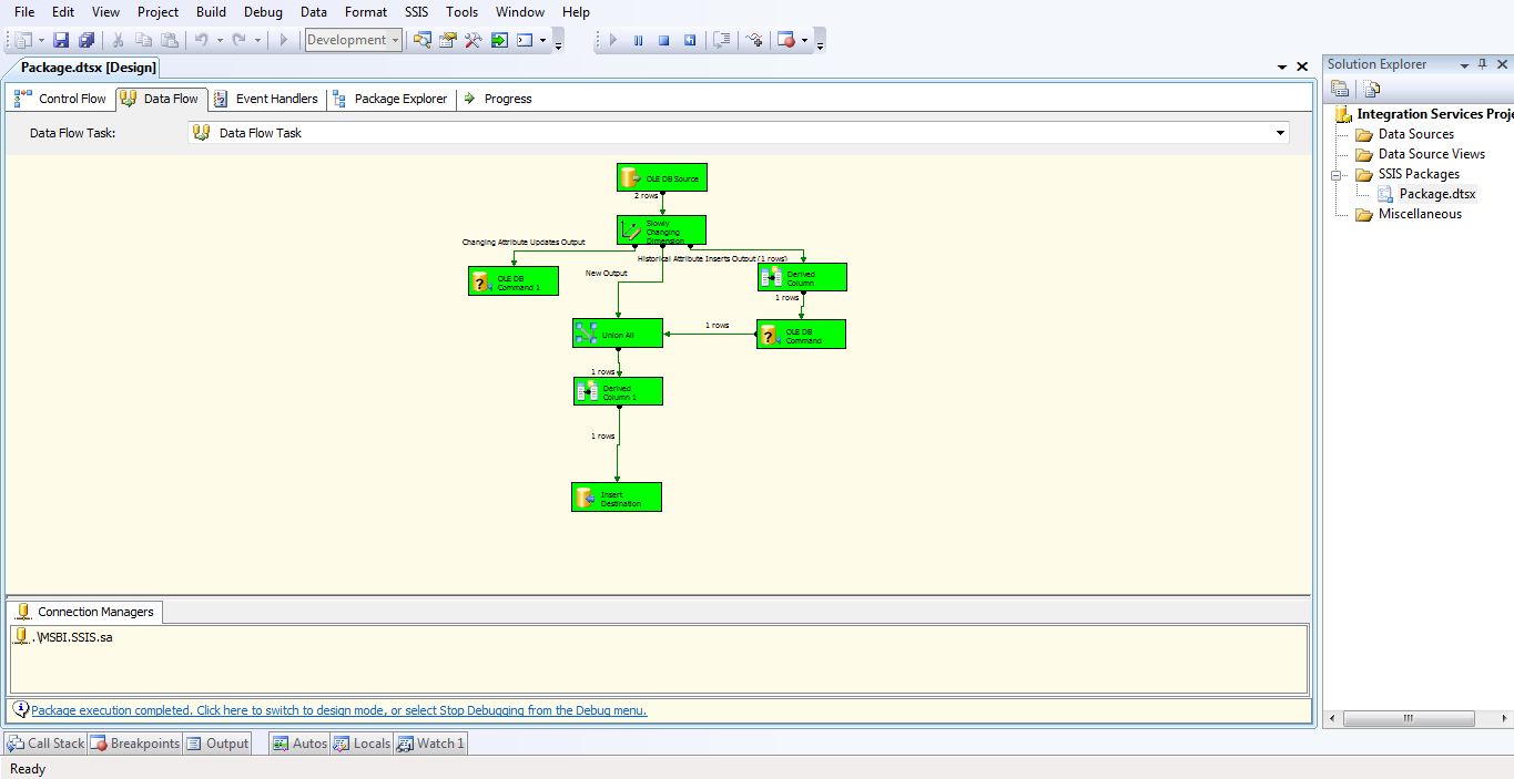 Then Execute the Package and Inserted two rows will be available in the Dimension Table.